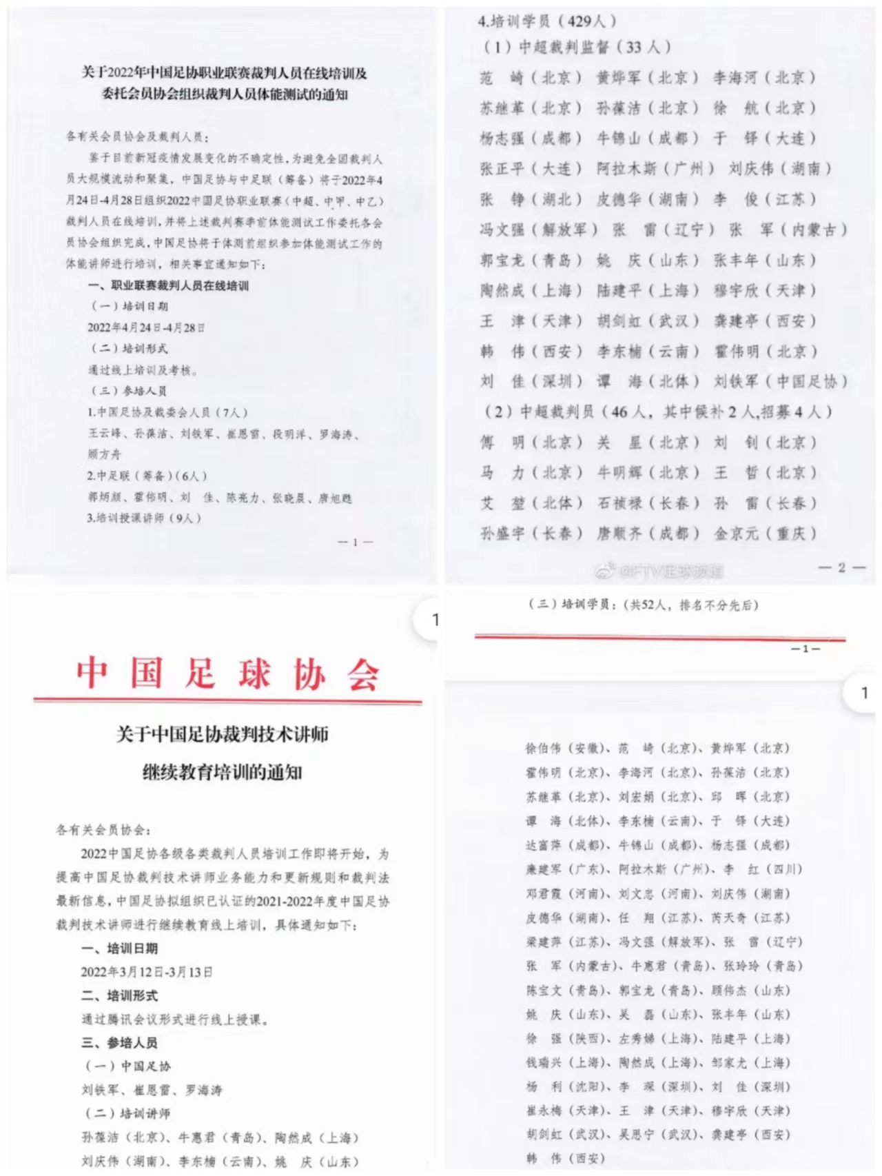为了提高中国足协裁判人员业务能力和更新规则和裁判法最新理念,统一2022赛季执法尺度,迎接即将开始的中国足协职业联赛(中超、中甲、中乙)新赛季,中国足球协会开展了2022年裁判人员培训工作。