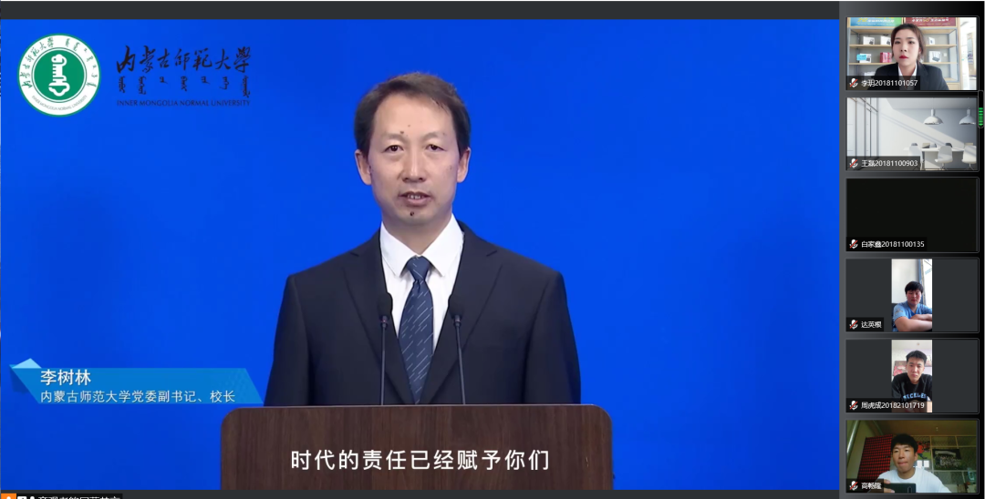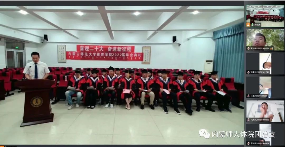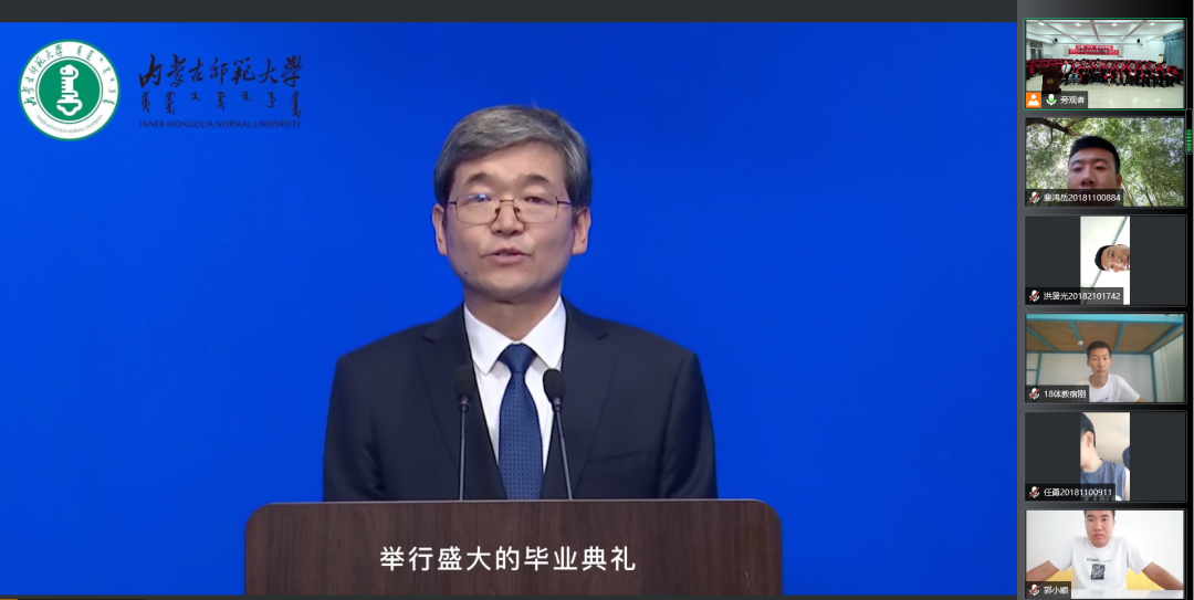 在毕业典礼上,体育学院全体教师和毕业生共同观看了内蒙古师范大学学校领导对毕业生的寄语视频。