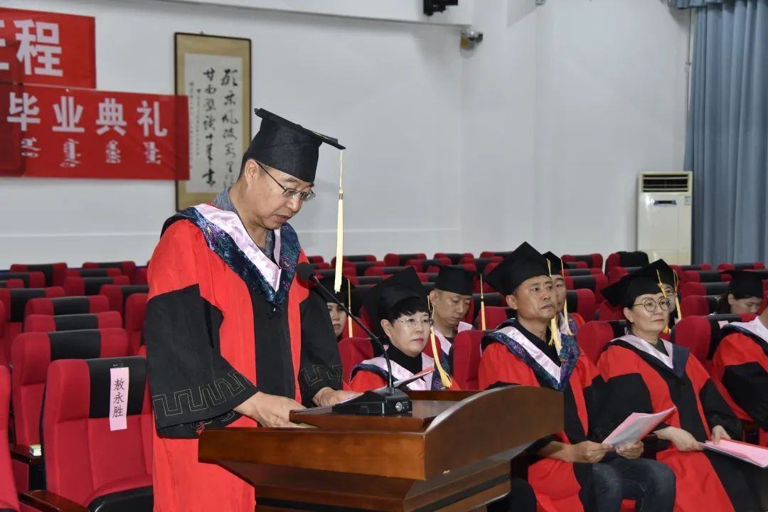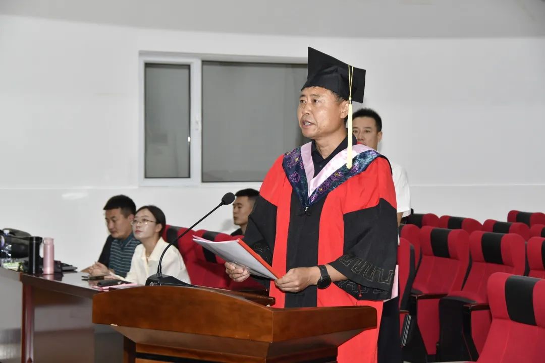 体育学院副院长、硕士生导师李凤新教授,宣读《关于授予智勇、苏博太等48名同学硕士学位的决定》。