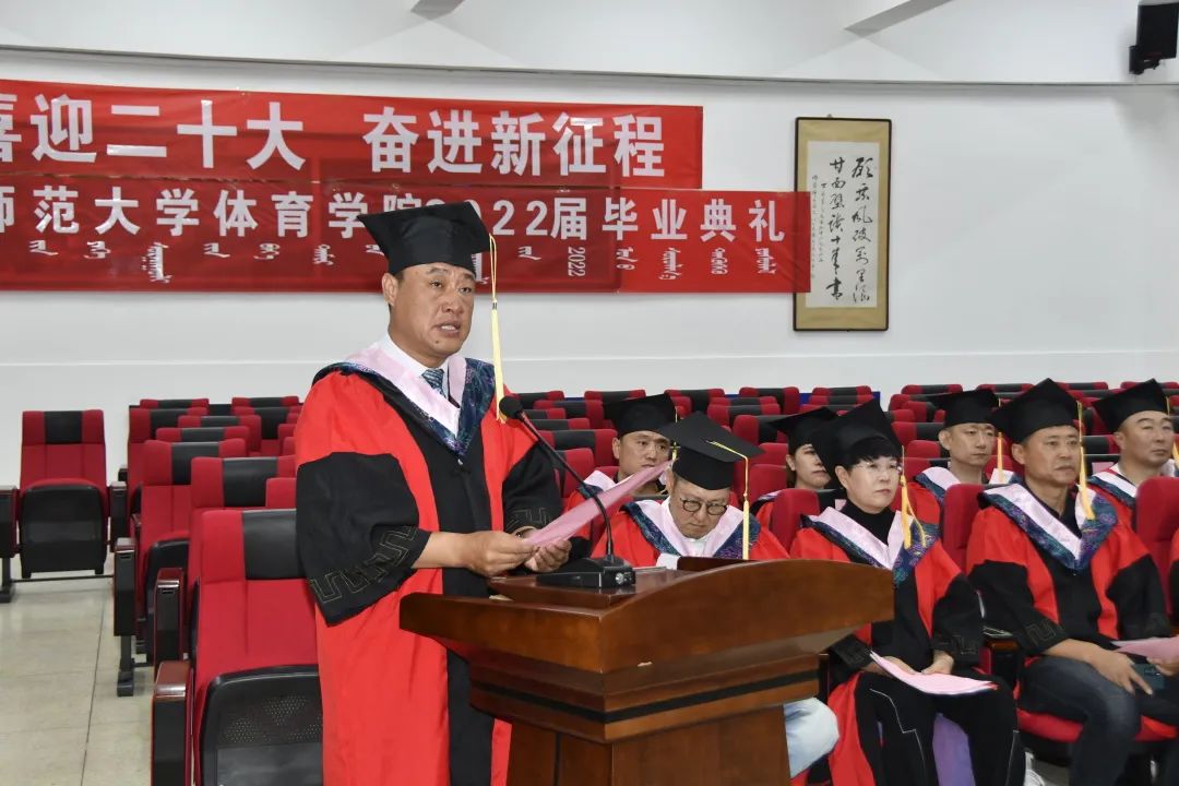 体育学院党委书记韩武,宣读体育学院2022届毕业生荣获2021—2022年自治区级“三好学生”、“优秀毕业生”、“优秀学生干部”名单。