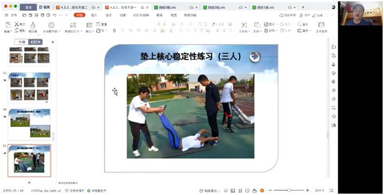 成进宇老师分享了《田径运动训练理论与方法》课程的教学特色与经验,结合田径教学的实践性特点,以腾讯会议为主要授课平台,以多案例与理论相结合的方式进行授课,增加了课程内容的趣味性,提高了学生的学习兴趣。